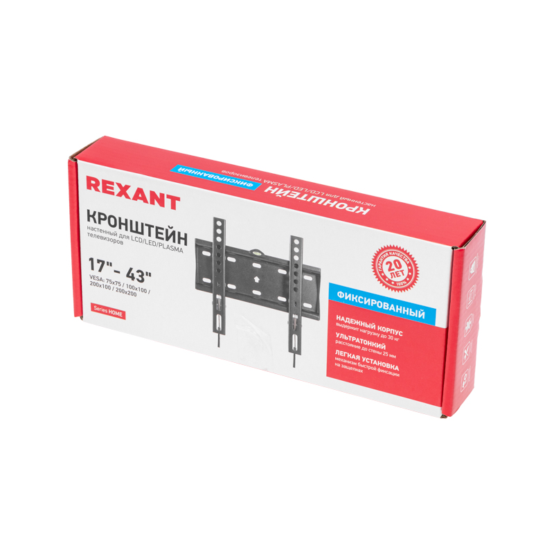 Фиксированный кронштейн серии Home представляет собой оптимальное приспособление для современного дома и офиса. Продуманная конструкция кронштейна предназначена для крепления телевизоров 17"- 43" дюймов на стену.