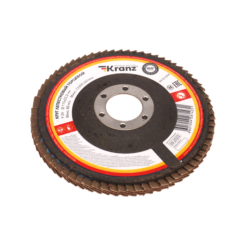 Круг лепестковый торцевой, P24, 115х22,2мм KRANZ