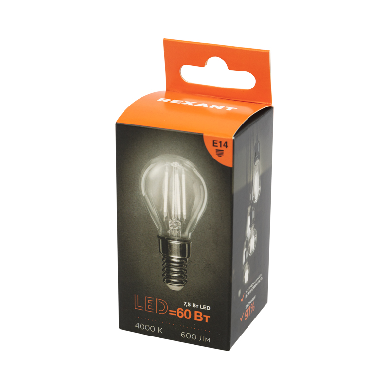 Также лампа равномерно распределяет температуру, благодаря чему не нагревается. Обладает мощностью в 7,5Вт и цоколем Е14.