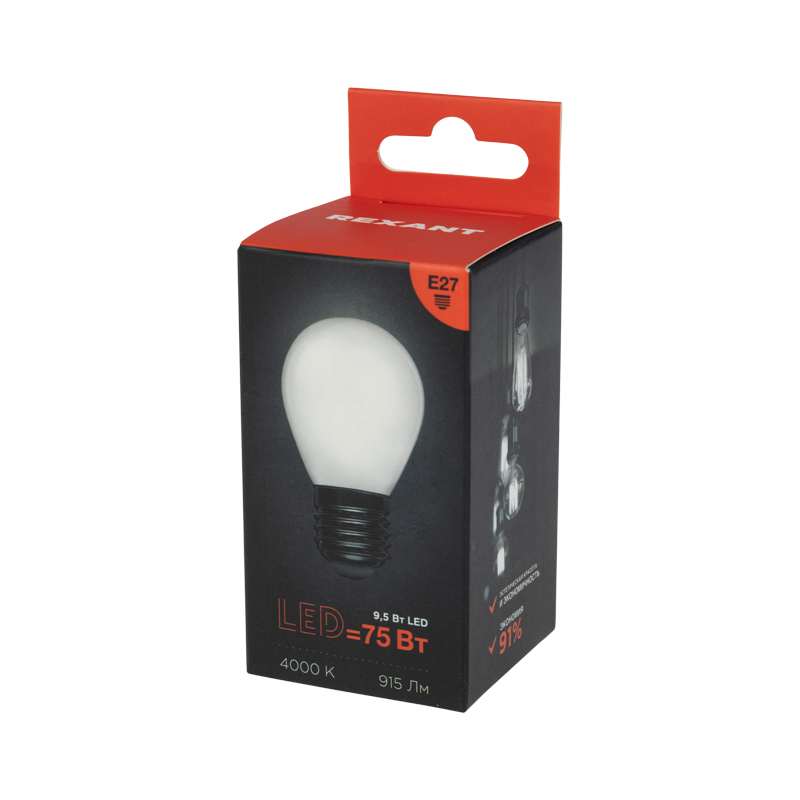 Лампа филаментная Шарик GL45 9,5Вт 915Лм 4000K E27 матовая колба REXANT