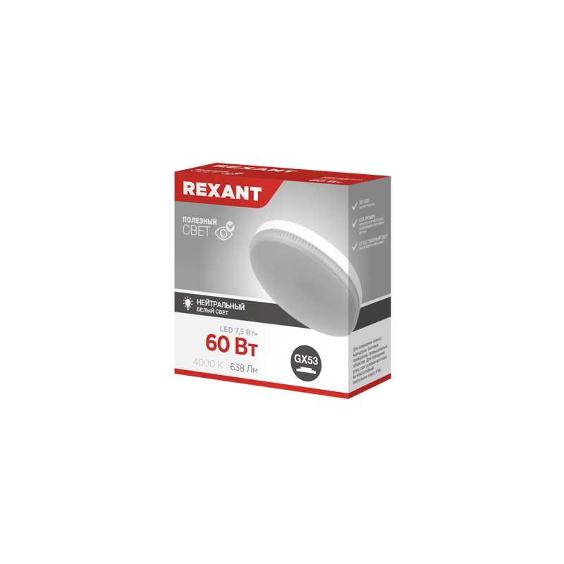 Лампа светодиодная GX53 таблетка 7,5Вт 638Лм 4000К нейтральный свет REXANT