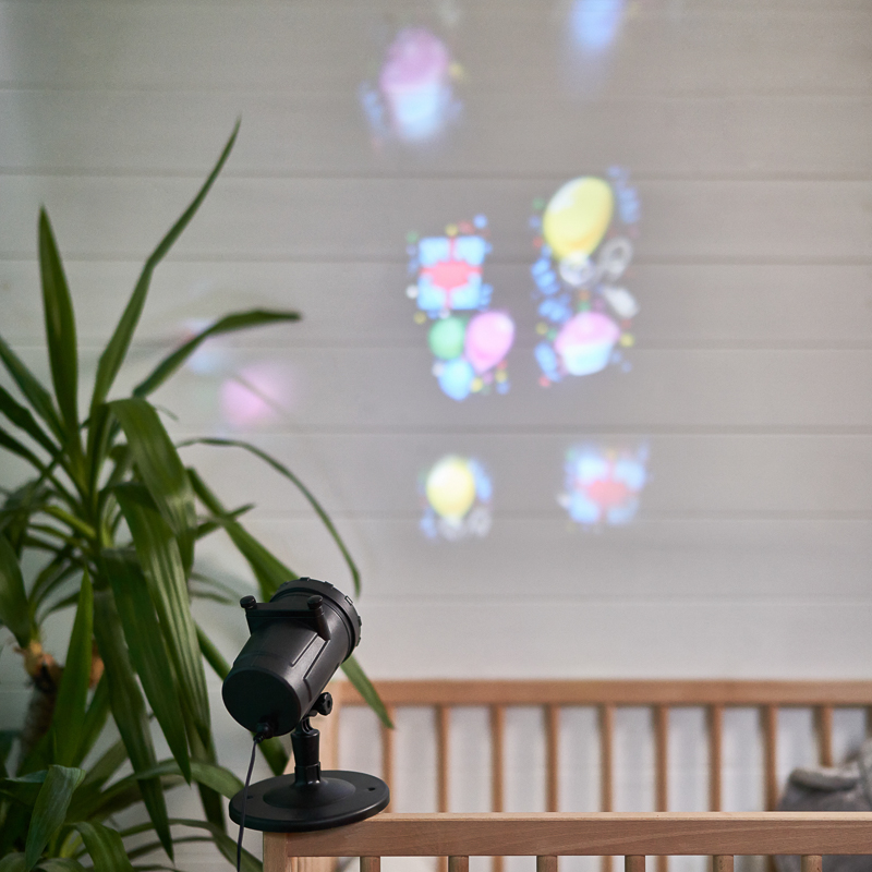 LED-проектор с 12 сменными слайдами создает проекцию изображений с карточек на любые поверхности с расстояния до 5 метров. С помощью устройства можно организовать увлекательную игру с показом слайдов, которая непременно понравится детям, или оформить праздничный интерьер световыми проекциями. 12 картинок разной тематики отображаются с размером 3,5×3,5м. В комплекте идет сетевой трансформатор на 12 Вольт, который делает работу проектора бесшумной, поэтому изделие подходит для использования в качестве ночника. Защита IP44 предполагает размещение как дома, так и на улице.