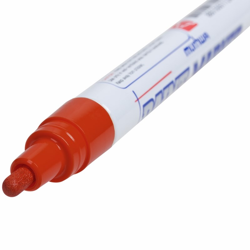 Маркер-краска MunHwa «Paint Marker» лаковый на нитро-основе. Используется для маркировки изделий из: пластика, дерева, металла, камня, кирпича, бетона, стекла, плитки, резины, кожи. Применяется при реставрации, декорировании, ремонте и строительстве. Чернила поступают дозированно, ровно ложатся на поверхность. Перед использованием необходимо встряхнуть маркер и в вертикальном положении надавить стержнем на поверхность: дать краске пропитать пишущий узел. Круглая форма наконечника не оставляет царапин при письме. Чернила высыхают на поверхности в течение 40-60 секунд. Корпус выполнен из прочного алюминия.