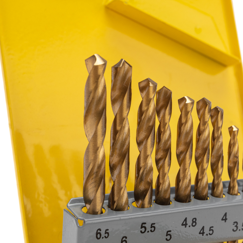 Комплект содержит сверла часто используемых диаметров: 1,5-2-2,5-3-3,2-3,5-4-4,5-4,8-5-5,5-6-6,5 мм.