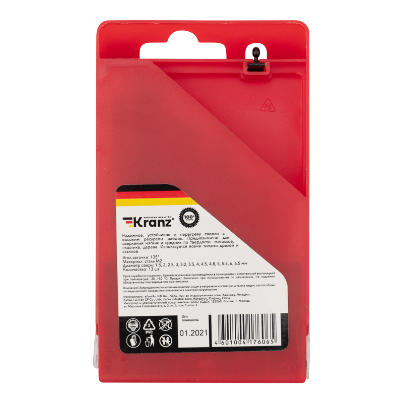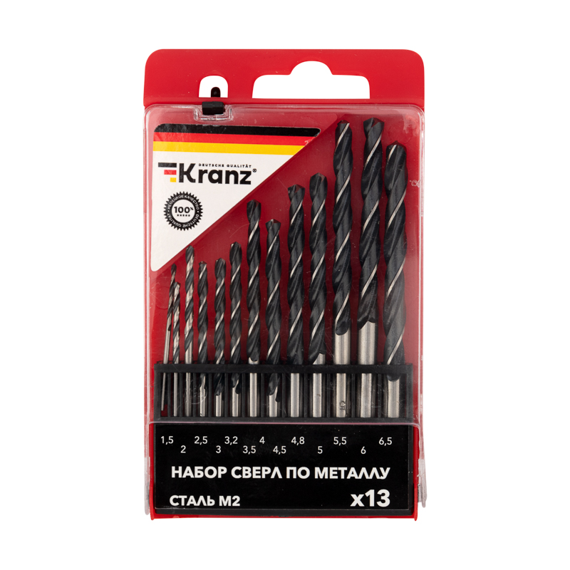 Набор из 13 сверл по металлу KRANZ предназначен для сверления отверстий в таких материалах, как сталь, дерево и пластик.