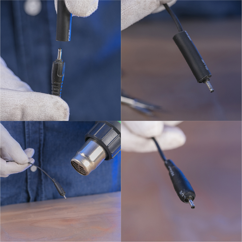 Рекомендуем проводить работы по усадке трубок с помощью специальных электромонтажных фенов и газовых горелок REXANT