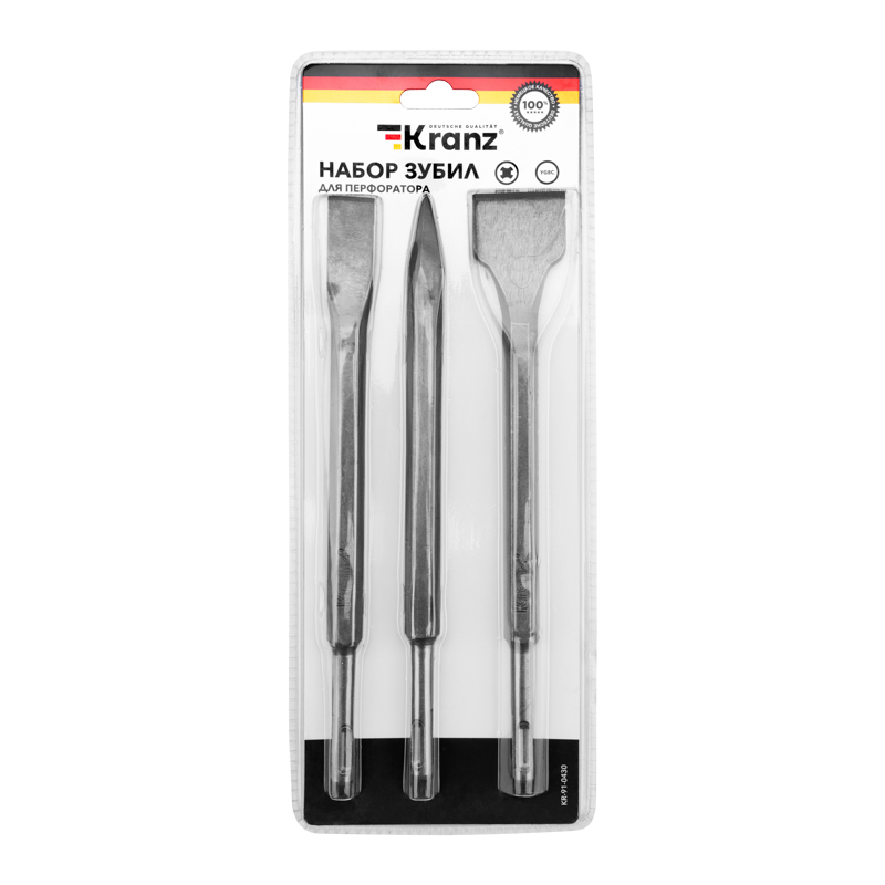 Набор из 3 зубил предназначен для выполнения широкого спектра долбежных и демонтажных работ по камню, бетону и кирпичу.