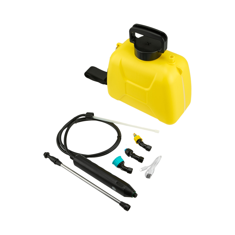 Опрыскиватель работает от встроенного аккумулятора, что устраняет необходимость постоянной ручной подкачки и снижает усталость при длительном использовании.