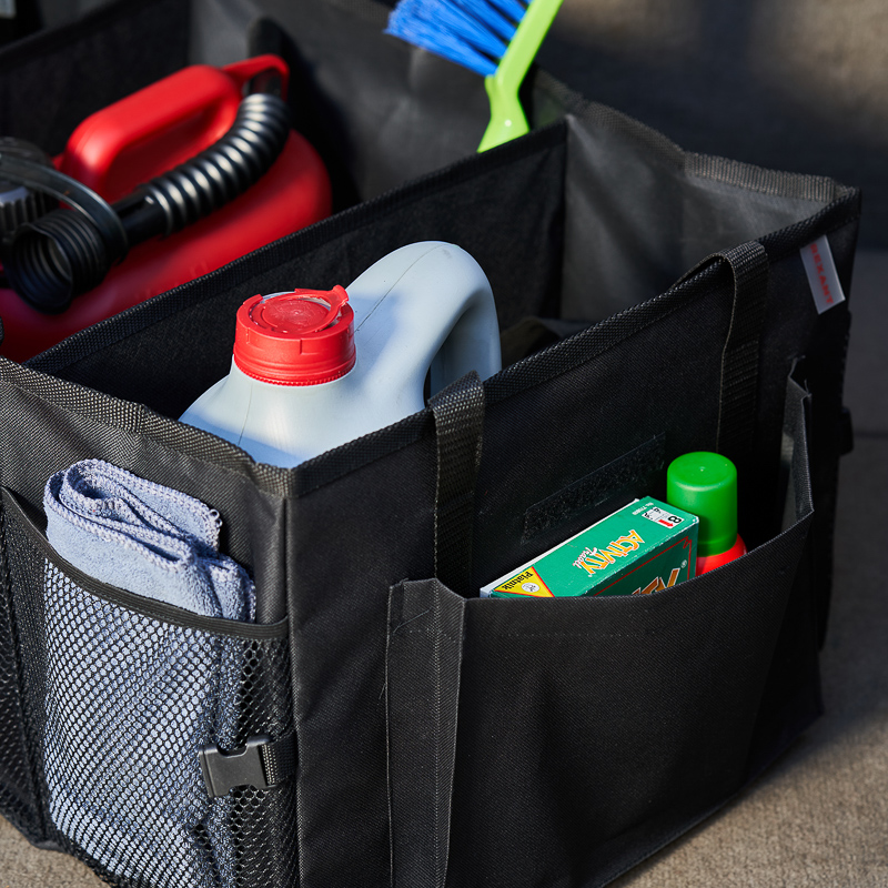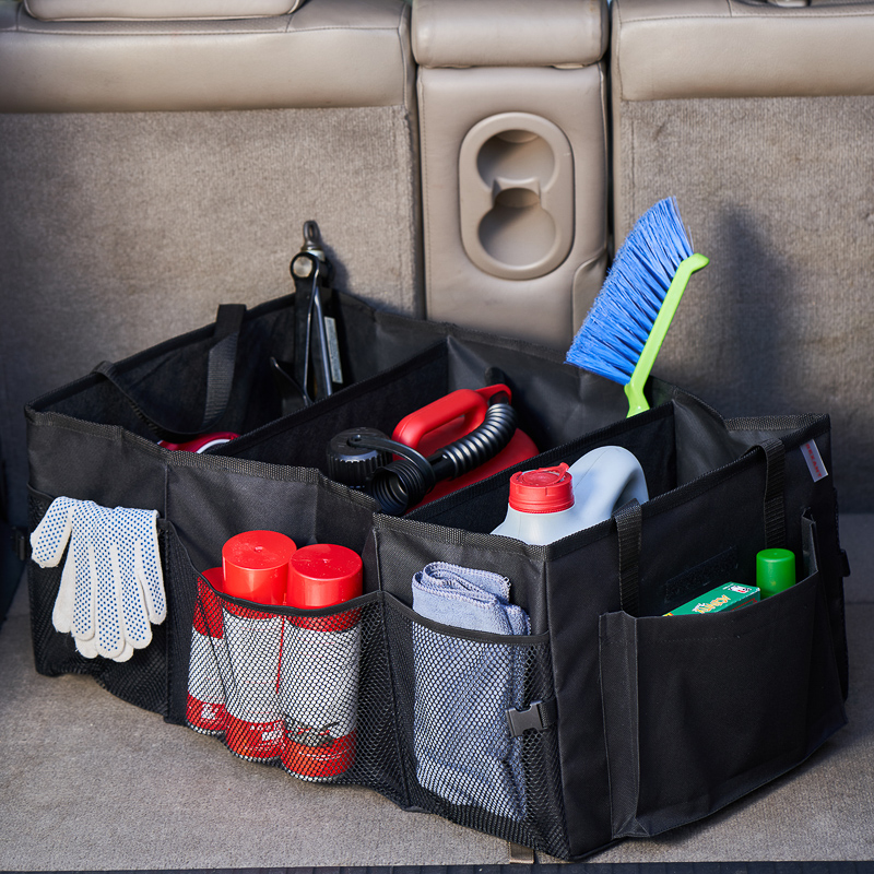 Органайзер оснащен тремя отделениями, которые позволяют хранить различные предметы, инструменты, средства для ухода за автомобилем, автохимию, аптечку, перчатки и многое другое.