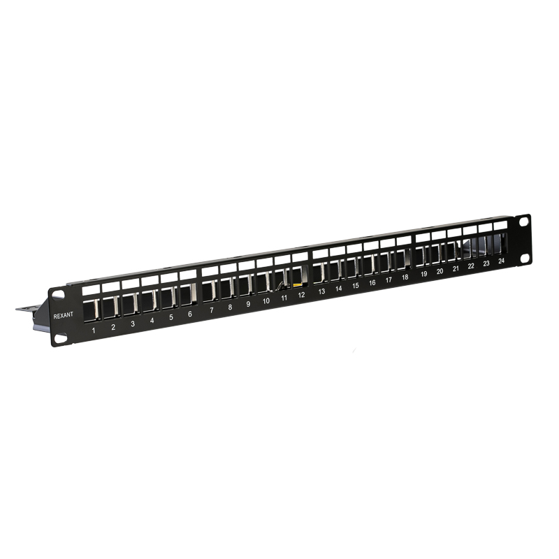 Содержит 24 порта: совмещает в своем корпусе разъемы разных видов (Keystone, RJ45 и т. д) и категорий (5е,6 и т. д).