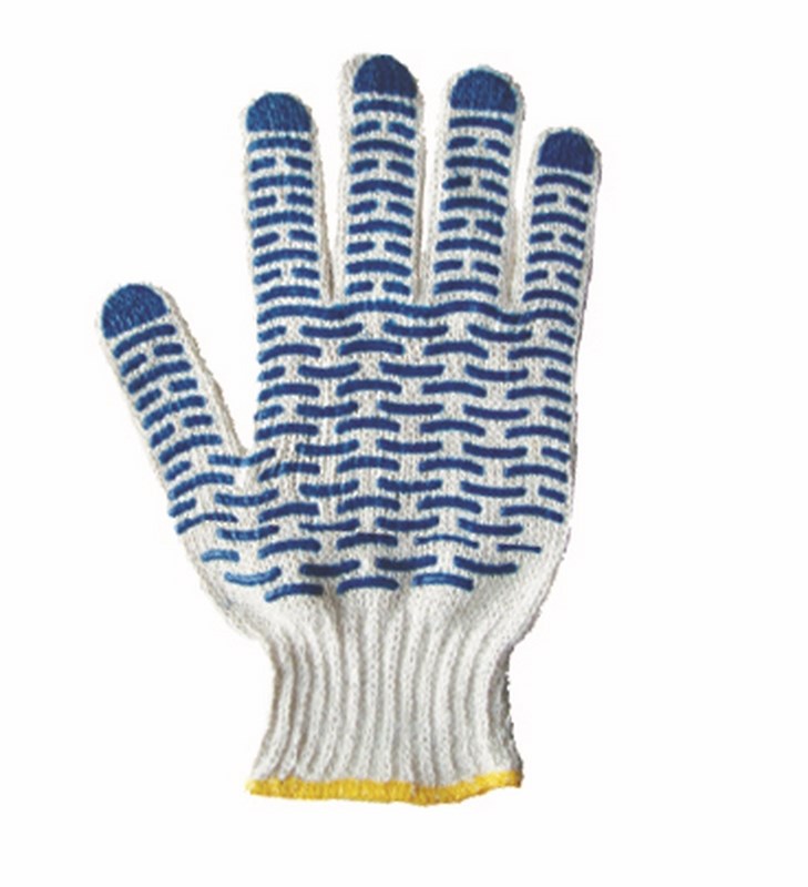 Перчатки покрыты ПВХ в виде точечного рисунка, который образует рельефные полоски на ладони и пальцах. Такая структура покрытия обеспечивает уверенный захват предметов, а также позволяет коже рук дышать.