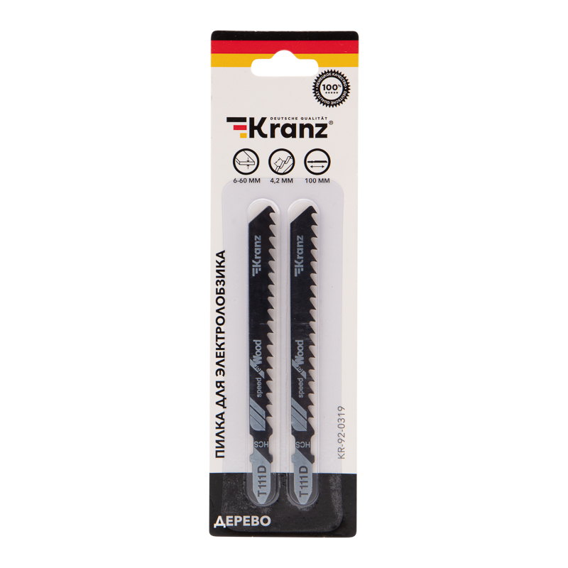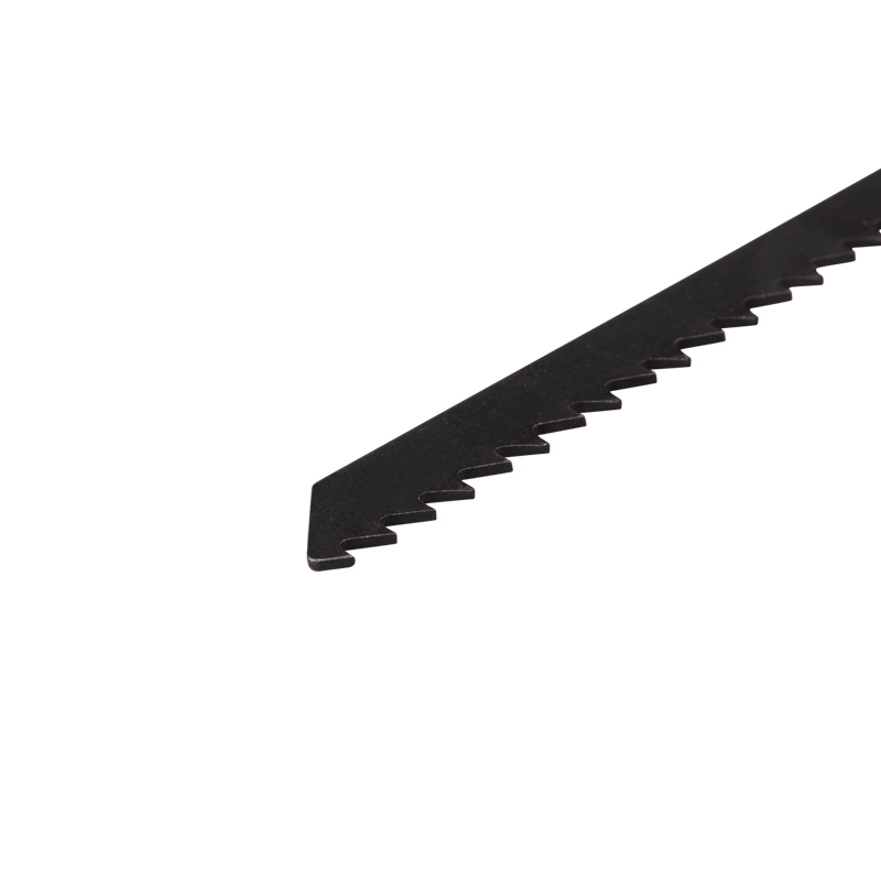 Полотно пилки выполнено из высокоуглеродистой стали, поэтому отличается прочностью и долговечностью. Режущая кромка состоит из зубьев с шагом 4,2 мм и предназначена для быстрого распила. Улучшенная закалка токами высокой частоты увеличивает твердость зубьев и обеспечивает высокий ресурс. Универсальный Т-образный хвостовик подходит для установки на большинство моделей электролобзиков.
