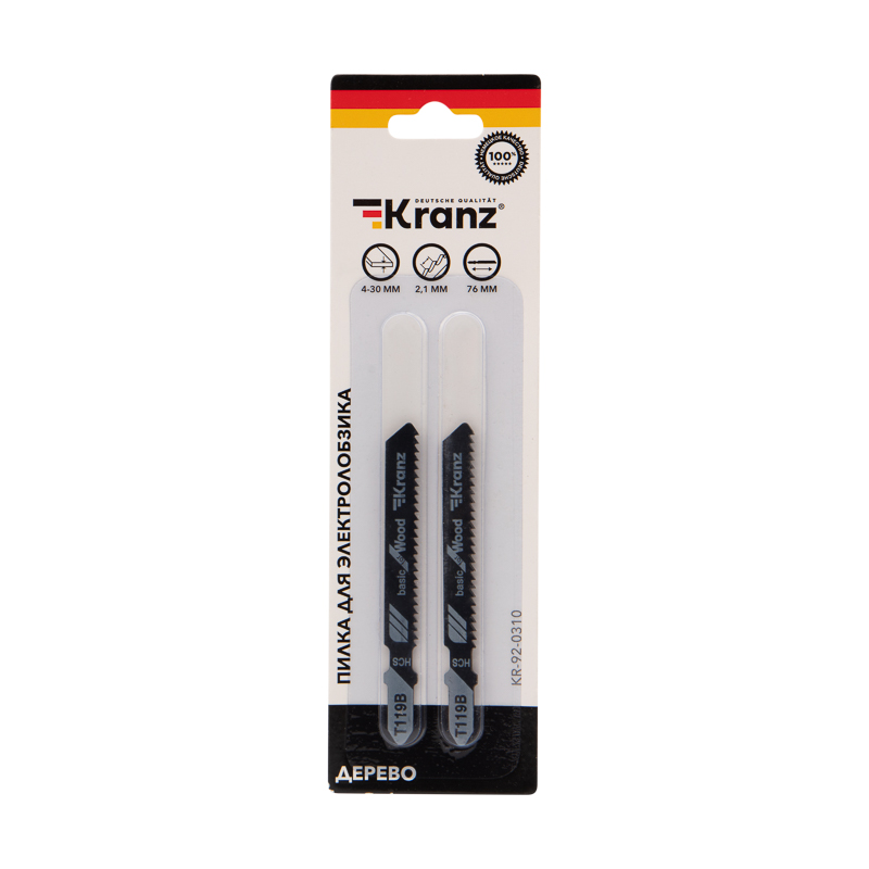 Полотно пилки выполнено из высокоуглеродистой стали, поэтому отличается прочностью и долговечностью. Режущая кромка состоит из зубьев с шагом 2,1 мм и рассчитана на получение чистого реза. Улучшенная закалка токами высокой частоты увеличивает твердость зубьев и обеспечивает высокий ресурс. Универсальный Т-образный хвостовик подходит для установки на большинство моделей электролобзиков.