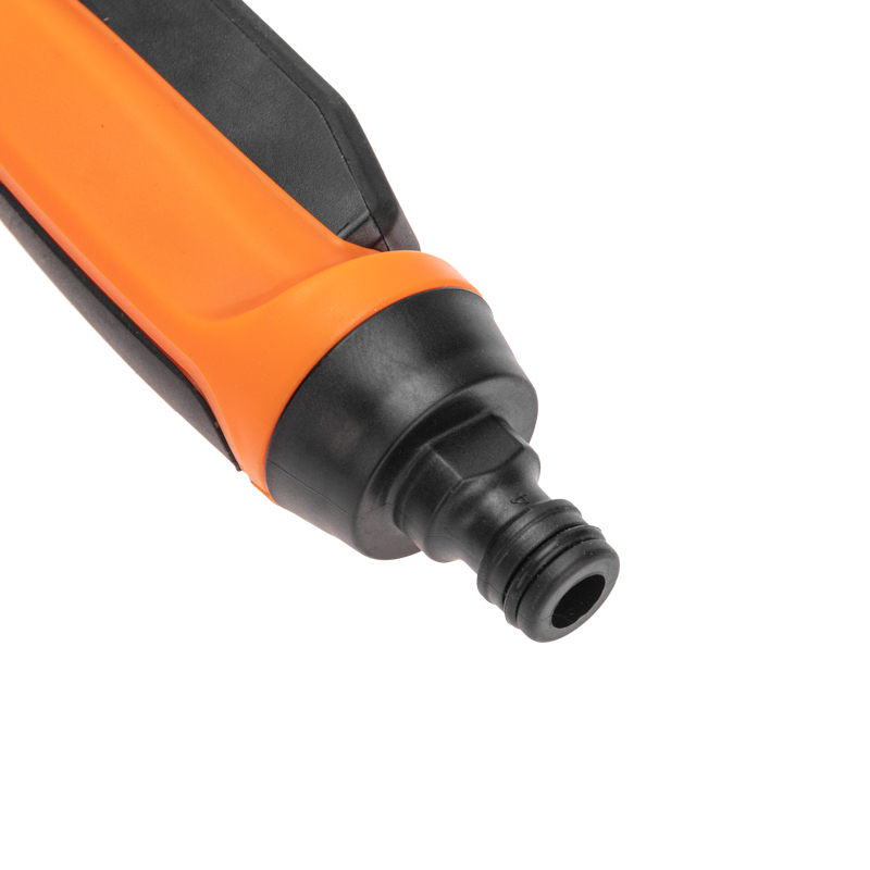 Изделие надежно и герметично крепится к шлангу при помощи универсального соединителя, расположенного на конце пистолета.