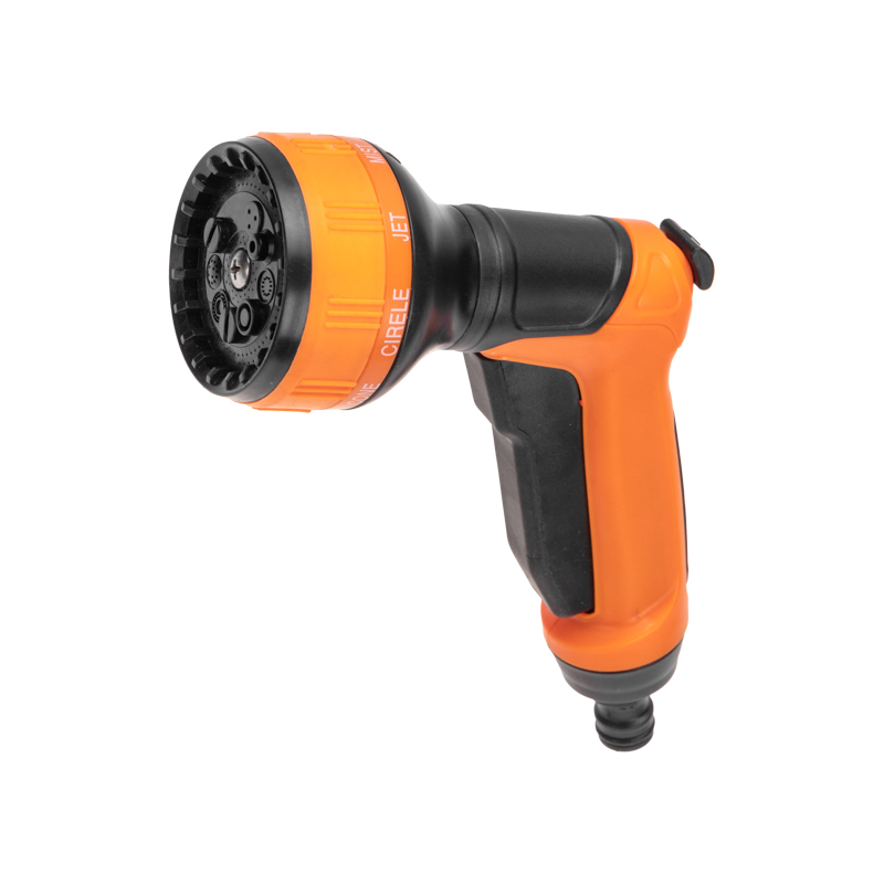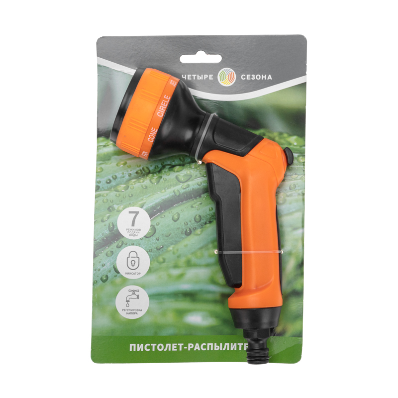 Пистолет оснащен эргономичной прорезиненной ручкой, благодаря которой его удобно и комфортно держать в руке даже на протяжении длительного времени. Имеет 7 режимов подачи воды, регулируемых поворотной головкой.