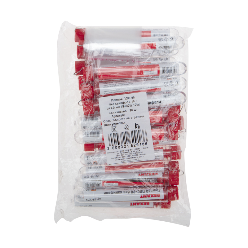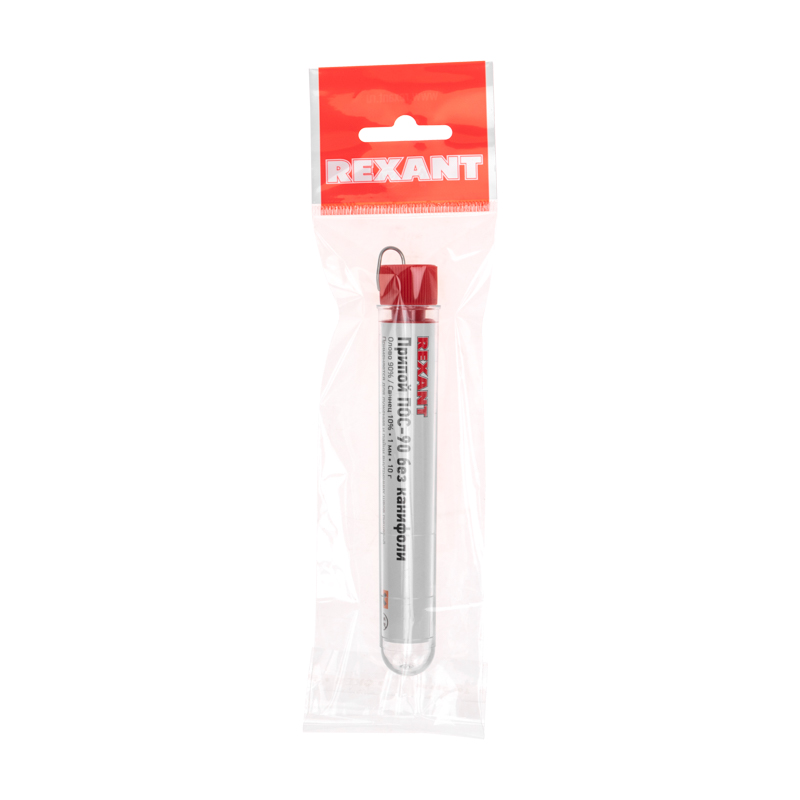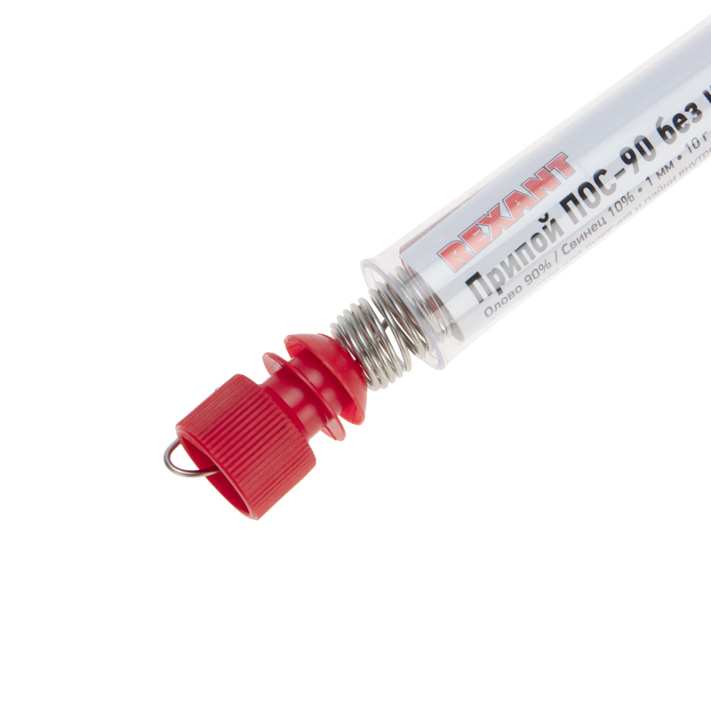Припой без канифоли ПОС-90, 10г, Ø1мм, (олово 90%, свинец 10%), колба REXANT