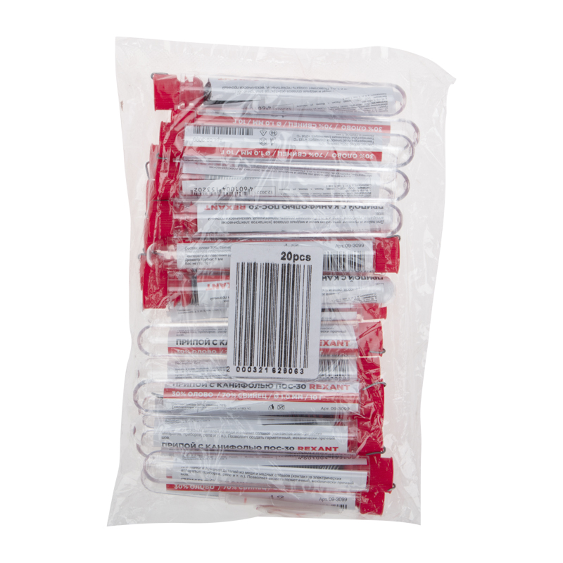 Припой с канифолью ПОС-30, 10г, Ø1мм, (олово 30%, свинец 70%), колба REXANT