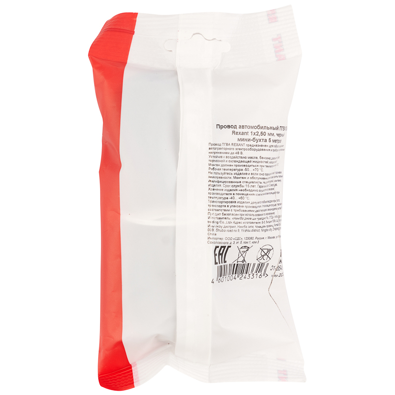 Цвет провода – черный, сечение – 1х2,50 мм, длина – 5 м.