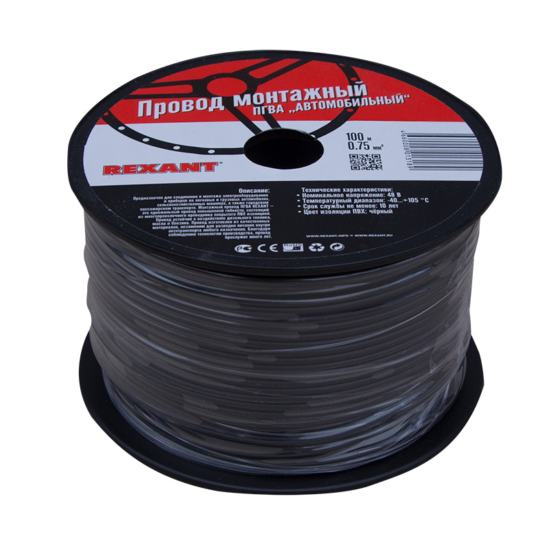 Провод ПГВА 1х0,75мм², черный, бухта 100м REXANT