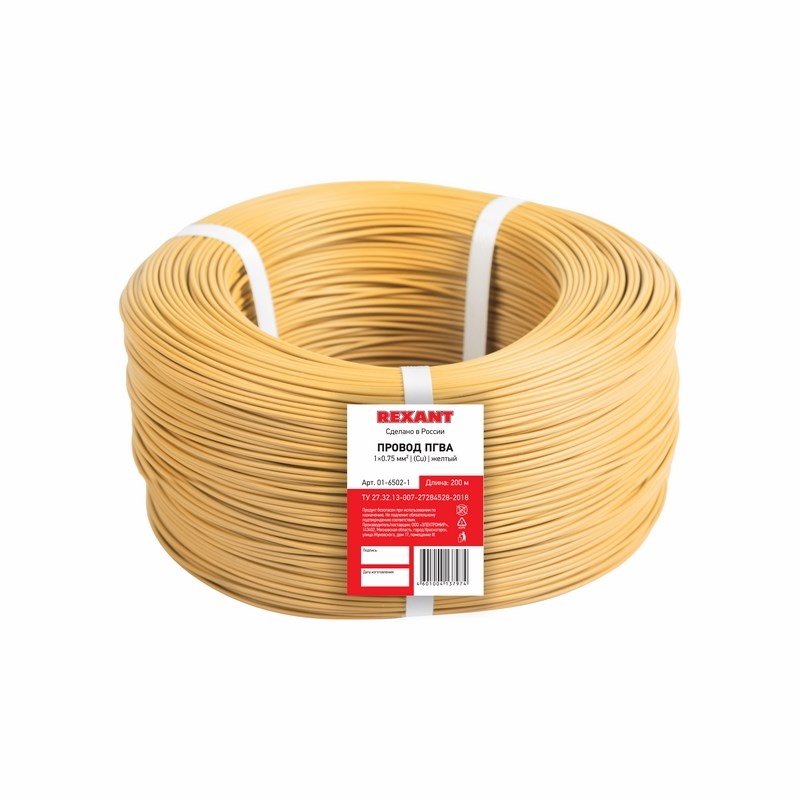 Провод ПГВА 1х0,75мм², Cu, желтый, бухта 200м REXANT