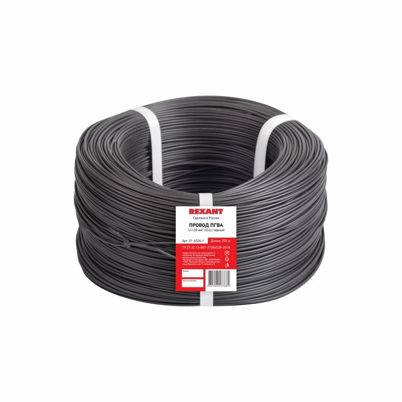 Провод ПГВА 1х1,00мм², Cu, черный, бухта 200м REXANT