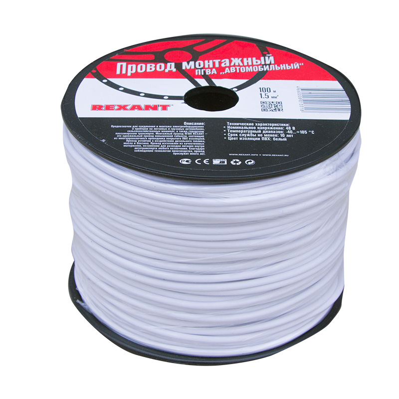 Провод ПГВА 1х1,50мм², белый, бухта 100м REXANT