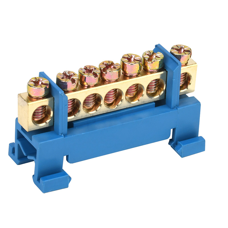 Шина «N» нулевая с синим изолятором тип «Стойка» на DIN-рейку 6x9мм 7 групп REXANT