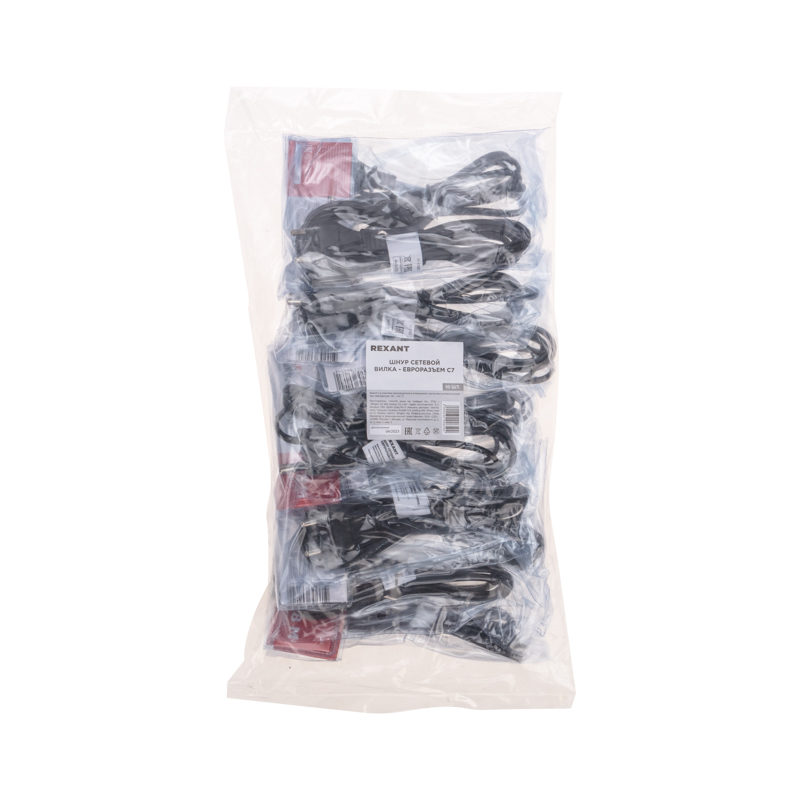 Шнур сетевой СЕЕ 7/16 - IEC 320 C7 1.8 м 2x0.75 мм² REXANT предназначен для подключения к сети переменного тока (AC) с напряжением 220 B аудио- и видеоаппаратуры, источников питания ноутбуков, игровых консолей и других приборов, имеющих штыревой сетевой разъем типа С8 (известен из-за его формы как «восьмерка»). Данный сетевой шнур (IEC cord) оснащен с одной стороны литой неразборной вилкой СЕЕ 7/16, с другой — литым гнездовым неполяризованным разъемом типа IEC 320 C7 и двухжильным проводом с сечением проводника 0.75 мм².