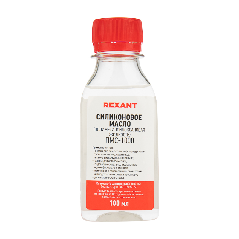Полиметилсилоксановая жидкость ПМС-1000 (ГОСТ 13032-77) REXANT – бесцветная, прозрачная, химически инертная и коррозионностойкая силиконовая жидкость без запаха.