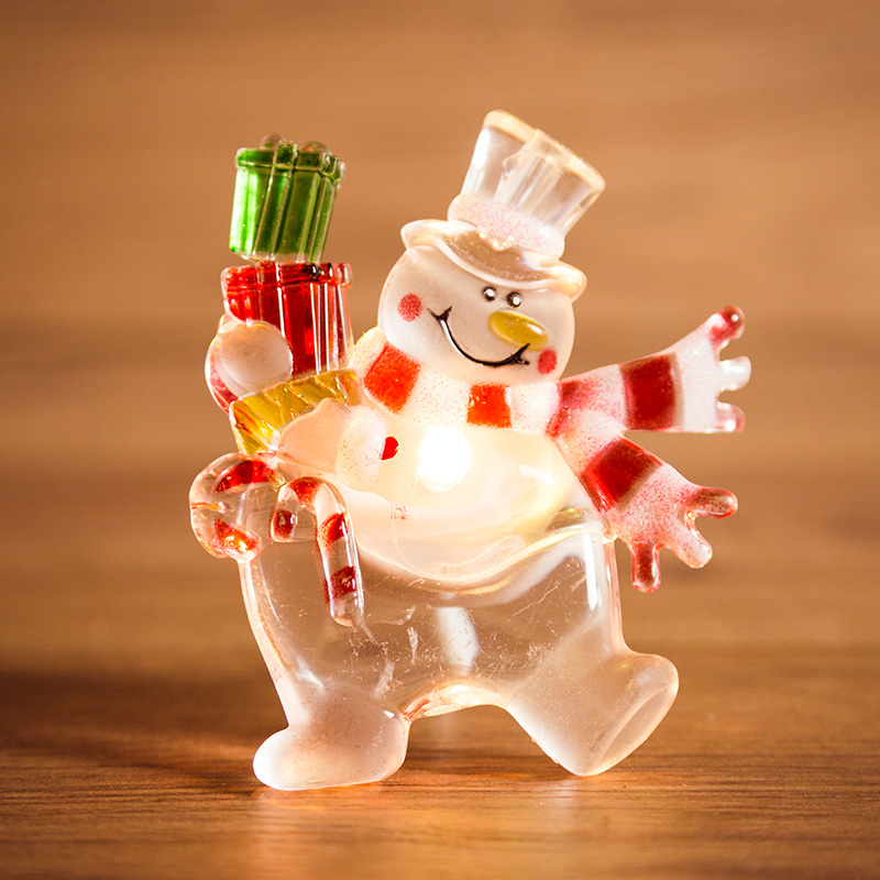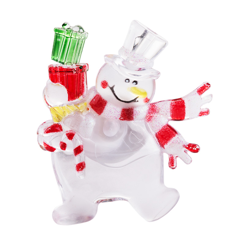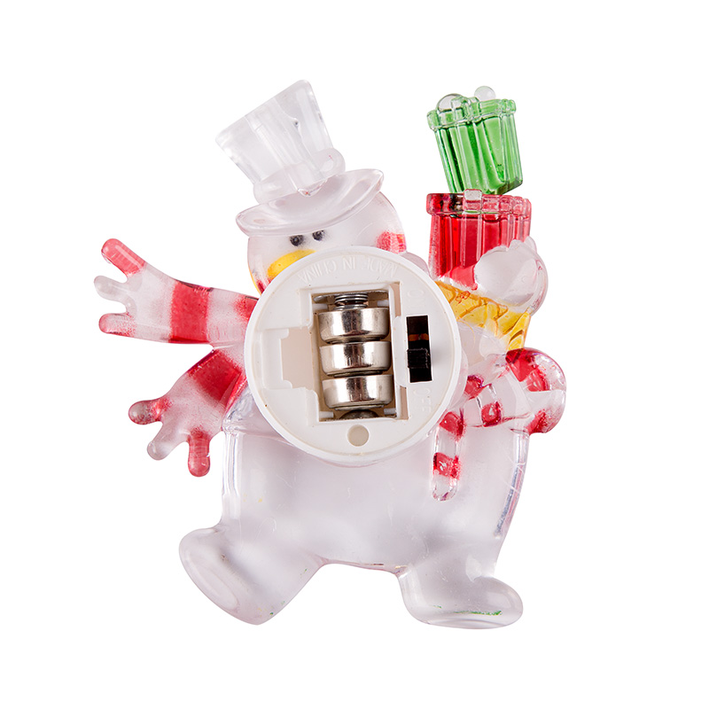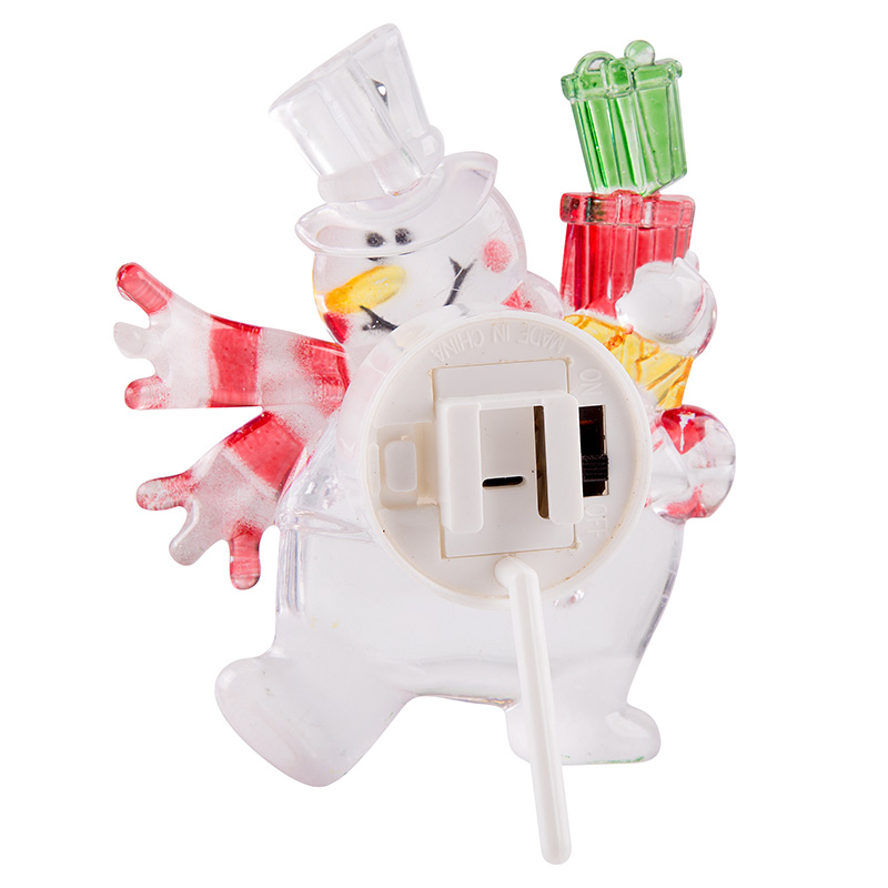 Светодиодная фигурка «Снеговик с подарком» выполнена в виде доброго забавного персонажа, который вызывает улыбку при одном взгляде на него. В центре декоративного изделия находится один светодиод RGB, меняющий цвета в хаотичном режиме. Оттенки плавно перетекают из одного в другой — всего 256 разных вариантов гаммы. На оборотной стороне расположен батарейный блок, рассчитанный на установку трех элементов питания типа LR41 (идут в комплекте). Крепкая присоска надежно фиксирует светодиодную фигурку на любых гладких поверхностях.