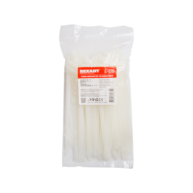 Хомут нейлоновый многоразовый REXANT 200x7,5 мм белого цвета предназначен для крепления или обвязки в жгут кабелей и проводов, гибких гофротруб, а также закрепления других объектов на несущей поверхности. Стяжка используется при проведении электромонтажных работ, монтаже структурированных кабельных систем, для бытовых нужд.