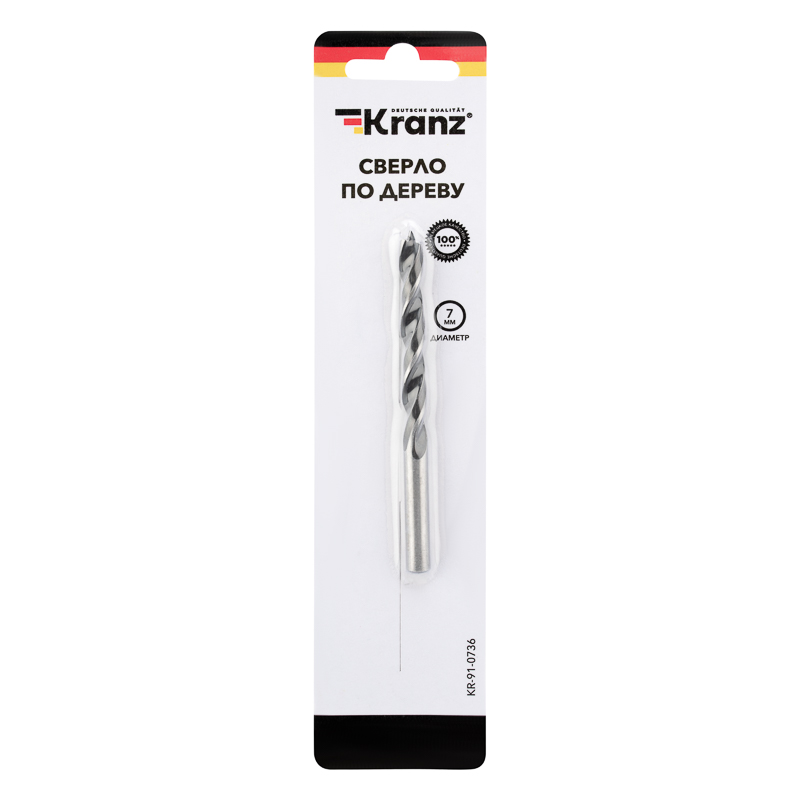 Сверло по дереву 7х105 мм, цилиндрический хвостовик Kranz