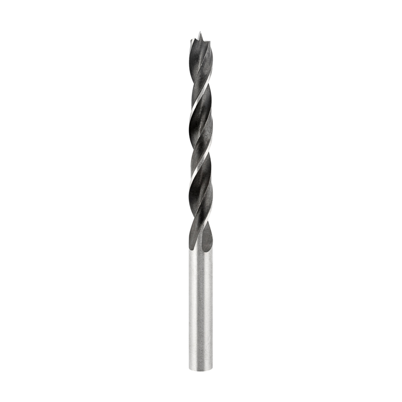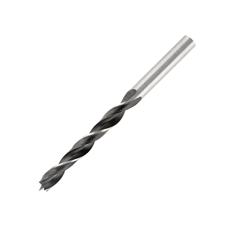 Изготовлено из инструментальной стали, что способствует износостойкости и долговечности инструмента. На конце рабочей части находится центрирующее острие, которое препятствует отклонению сверла от заданной оси и позволяет более удобно засверливаться в материал. Цилиндрический хвостовик, совместимый со стандартным патроном дрели, надежно фиксирует оснастку во время работы инструмента.
