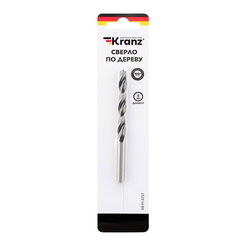 Сверло по дереву 8х115 мм, цилиндрический хвостовик Kranz