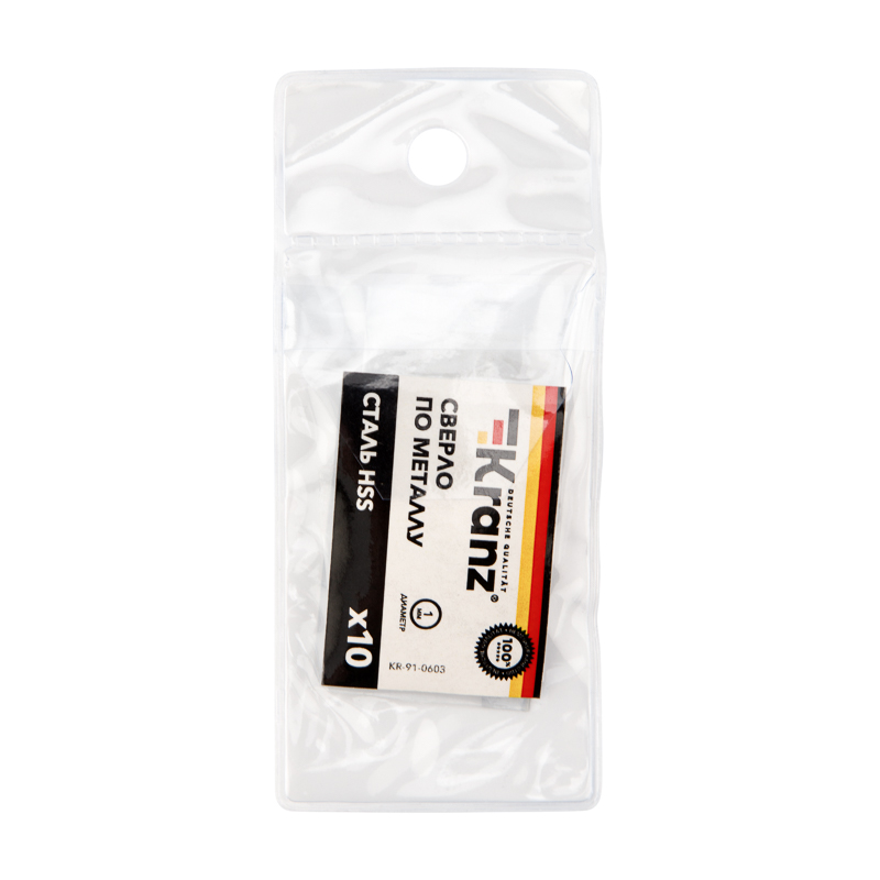Сверло KRANZ изготовлено по стандарту DIN 338 и используется для сверления отверстий в таких материалах, как сталь, дерево и пластик. Применяется с дрелями, шуруповертами и станками с цилиндрическим типом крепления.