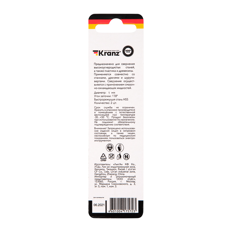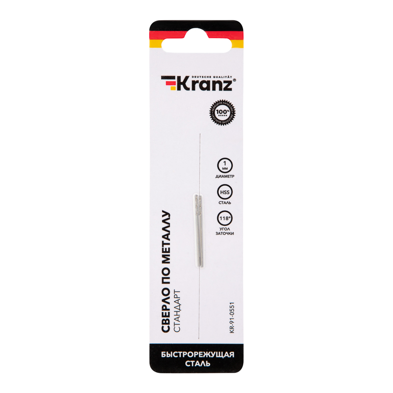 Сверло KRANZ изготовлено по стандарту DIN 338 и используется для сверления отверстий в таких материалах, как сталь, дерево и пластик.