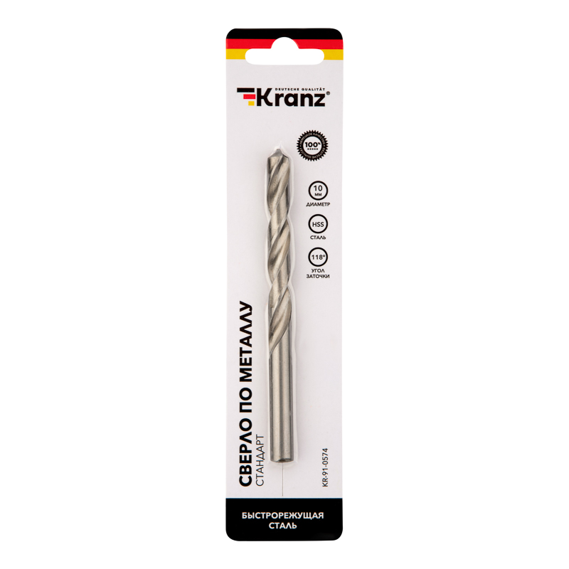Сверло KRANZ изготовлено по стандарту DIN 338 и используется для сверления отверстий в таких материалах, как сталь, дерево и пластик.