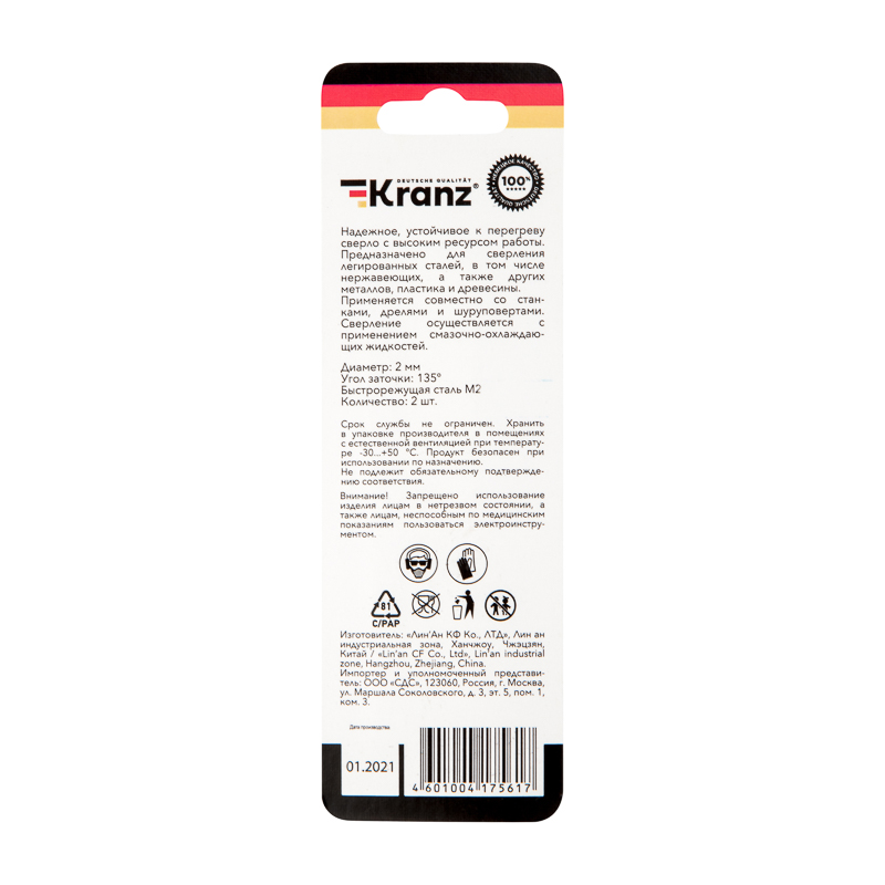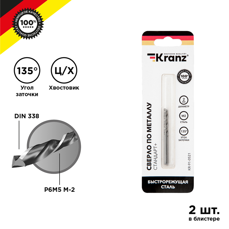 Сверло по металлу KRANZ изготовлено по стандарту DIN 338 и используется для сверления отверстий в таких материалах, как сталь, чугун, нержавеющая сталь, цветные металлы и пластик. Применяется совместно с дрелями, шуруповертами и станками с цилиндрическим типом крепления.