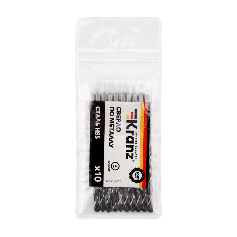 Сверло по металлу 3,0х61х33мм (HSS), DIN 338, 10 шт. в упаковке KRANZ
