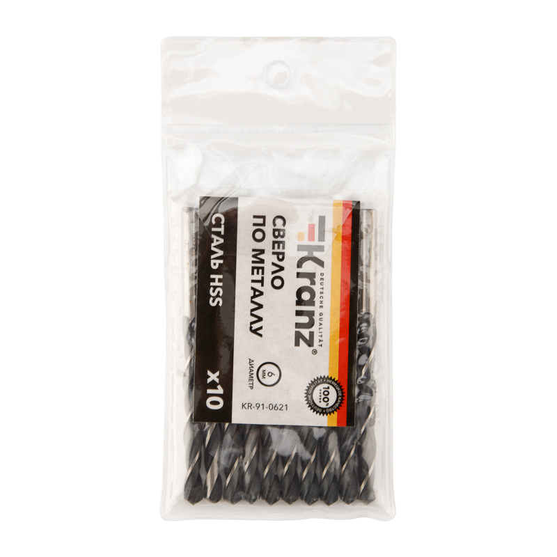 Сверло по металлу 6,0х93х57мм (HSS), DIN 338, 10 шт. в упаковке KRANZ