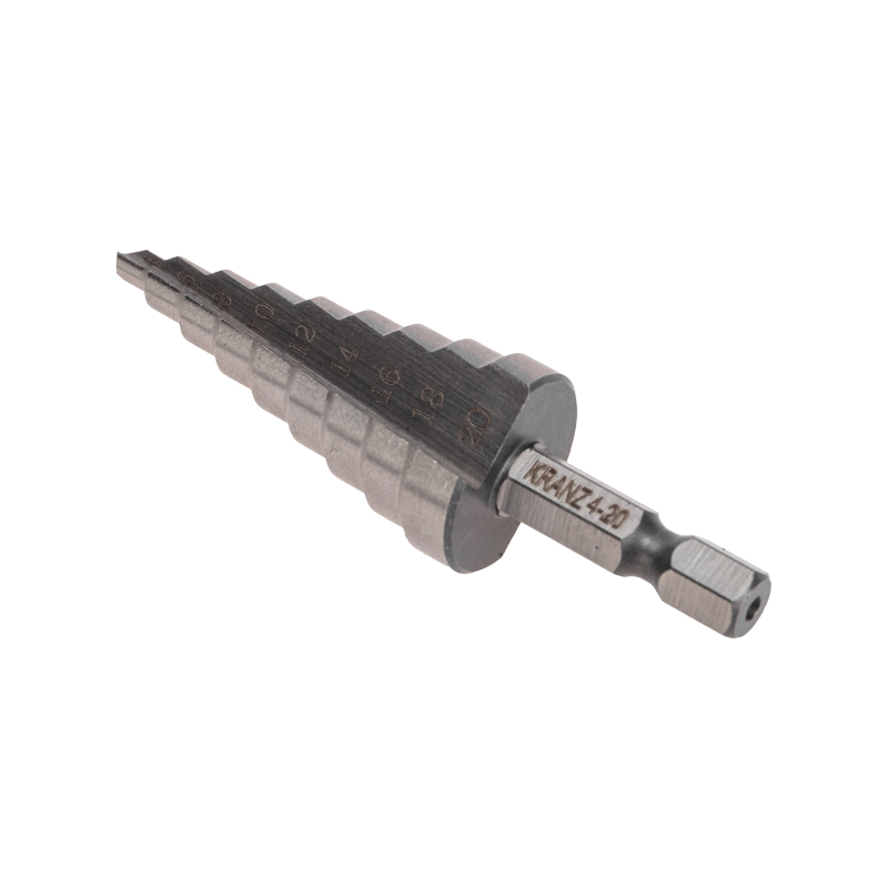 На каждой из 9 ступеней сверла нанесена маркировка фактического диаметра. Диапазон ступеней: 4, 6, 8, 10, 12, 14, 16, 18, 20 (шаг 2 мм).