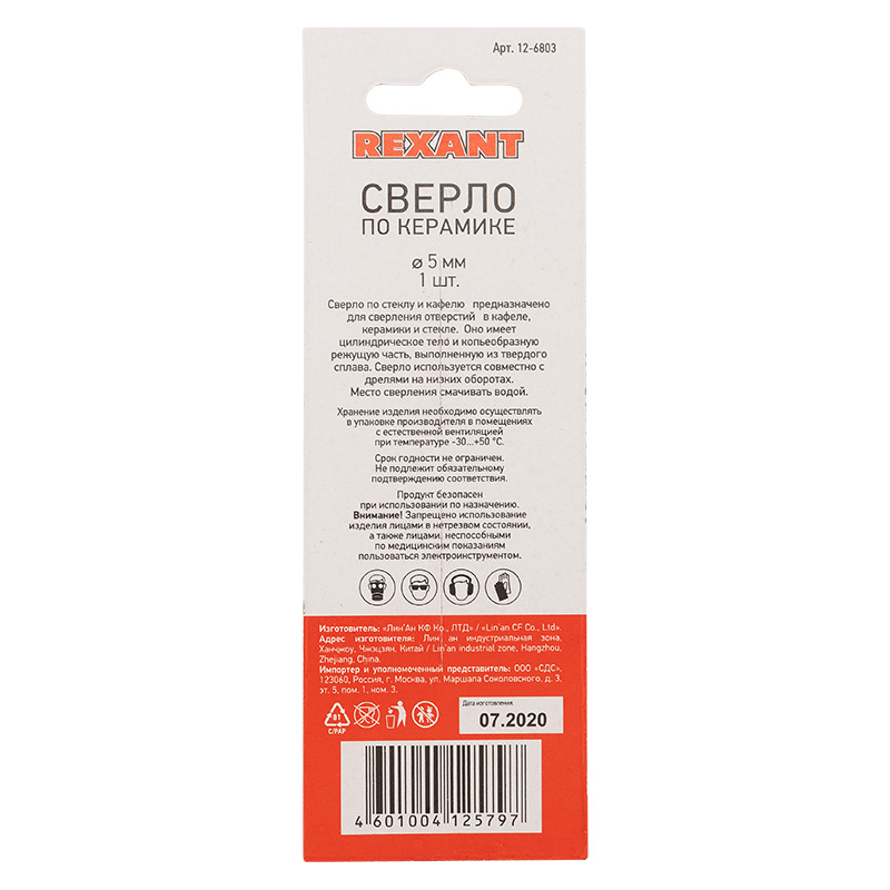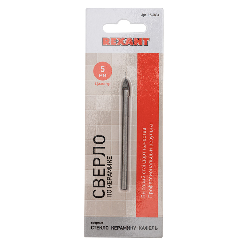 Сверло по стеклу и кафелю REXANT предназначено для обработки кафеля, стекла и керамики. Оно имеет цилиндрическое тело и копьеобразную режущую часть, выполненную из твердого сплава. Сверло используется совместно с дрелями на низких оборотах.