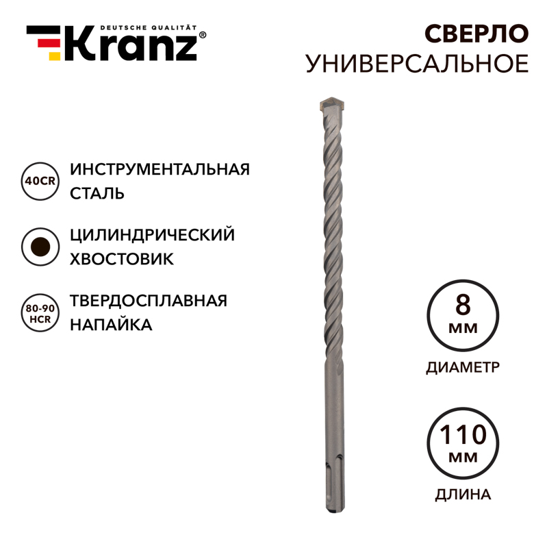 Сверло универсальное твердосплавное, 8мм KRANZ