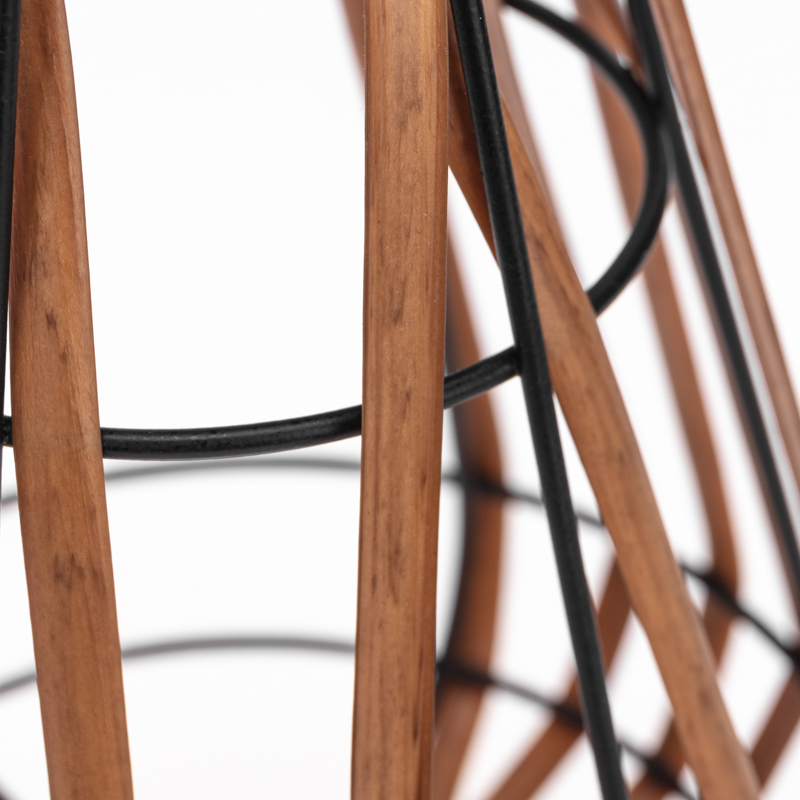 Открытая конструкция позволяет свету нежно проникать сквозь тростниковые переплетения, создавая завораживающие узоры на окружающих поверхностях.