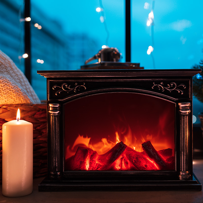 Светодиодный камин «Классика» создаст неповторимую атмосферу уюта и тепла. Имитация достигается благодаря трем светодиодам, подсвечивающим композицию в виде обугленных поленьев. Фасад с серебрением выполнен с эффектом состаренной поверхности. На корпусе расположен удобный перекидной выключатель. Камин питается от 3 батареек типа С или через адаптер питания и USB-кабель. Светодиоды не нагреваются и экономно расходуют заряд элементов питания. Динамическое свечение обеспечивает эффект живого, плавно двигающегося огня и натуральный вид раскаленных углей.