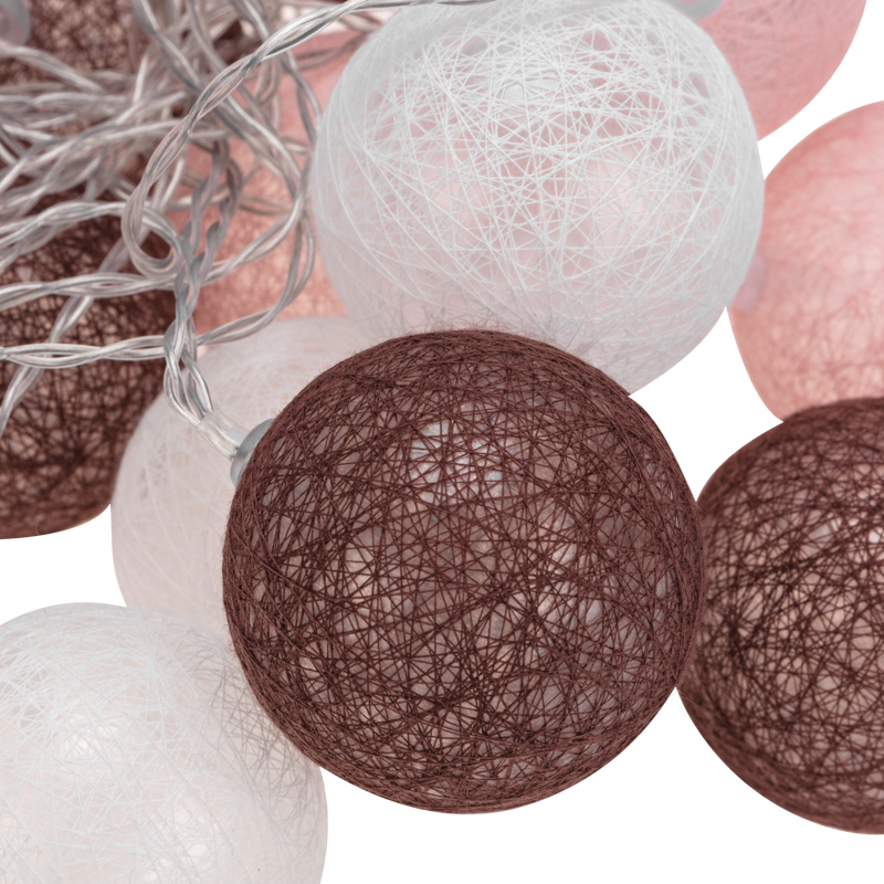 На проводе, помещенном в прозрачную изоляцию из ПВХ, находятся 20 волшебных круглых фонариков из хлопковых нитей.