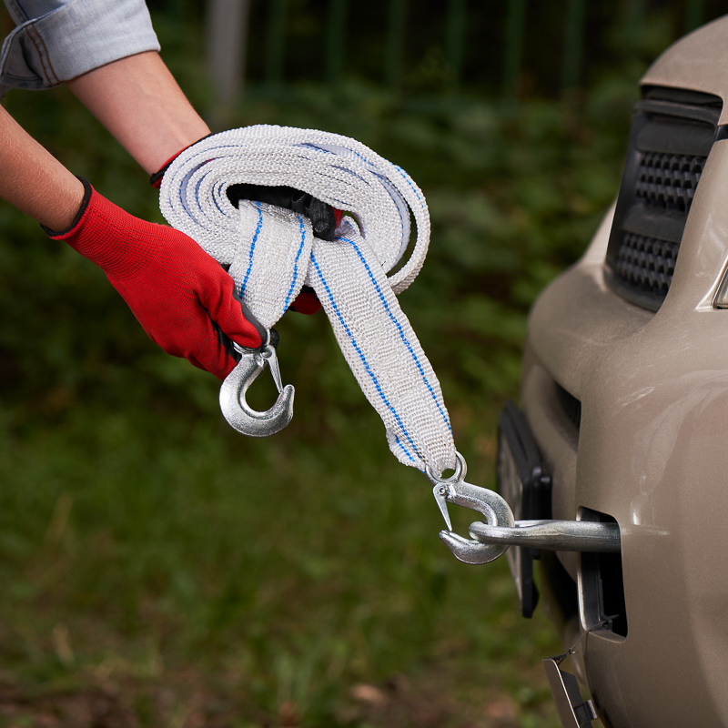 Буксировочный трос предназначен для надежного соединения двух автомобилей с целью безопасной транспортировки или буксировки одного автомобиля с помощью другого.