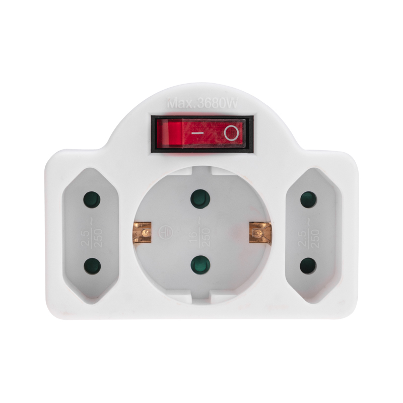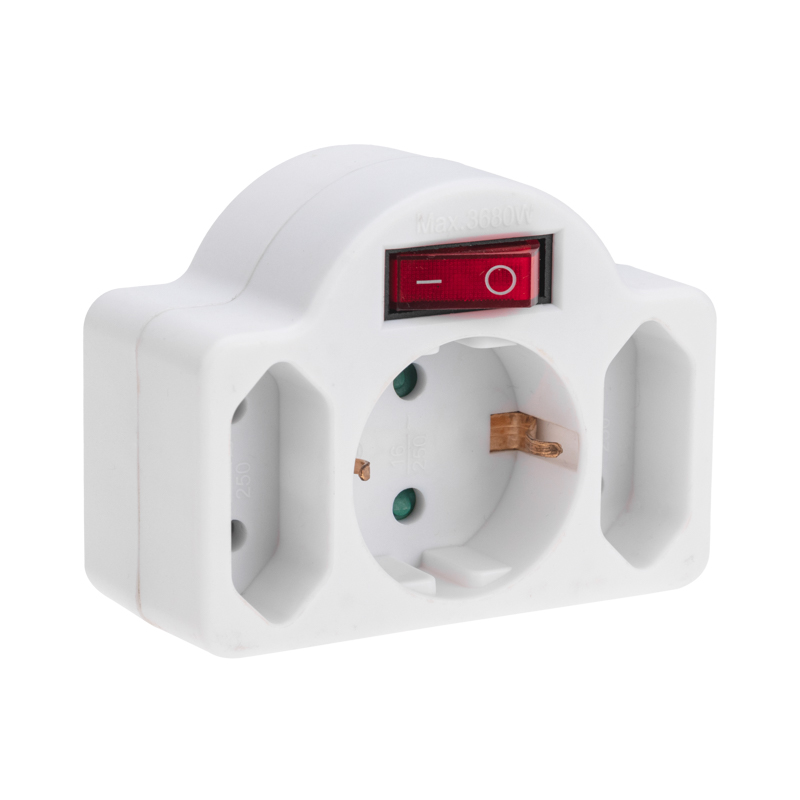 Электрический тройник REXANT предназначен для одновременного подключения к электрическим сетям с напряжением 230 В сразу трех приборов.