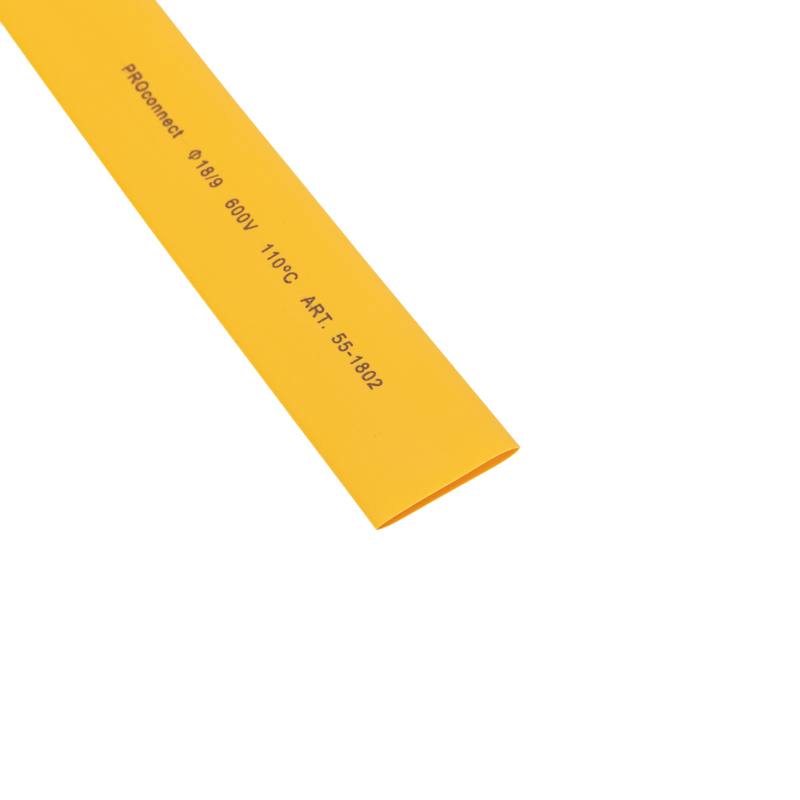Трубка термоусаживаемая ТУТ 18,0/9,0мм, желтая, упаковка 50 шт. по 1м, PROconnect