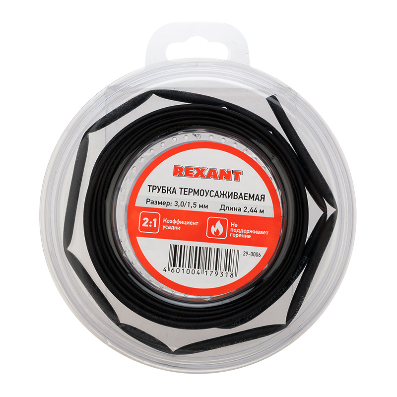 Трубка термоусаживаемая ТУТ нг 3,0/1,5мм, черная, ролик 2,44м REXANT